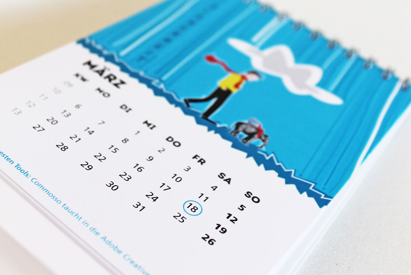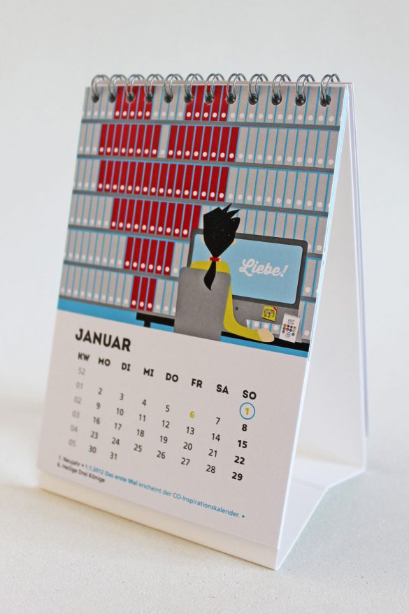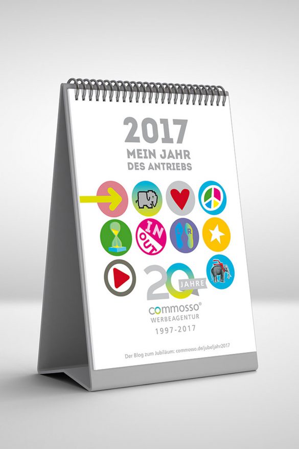 Für einen Jahreskalender, der seinem Betrachter jeden Monat neue Denkanstöße geben möchte, sind diese Entwürfe entstanden. Motto für diesen Kalender war „Mein Jahr des Antriebs“. Der Elefant ist Markensymbol der Kommunikations-Agentur und begleitet die Illustrationen spielerisch.