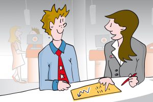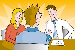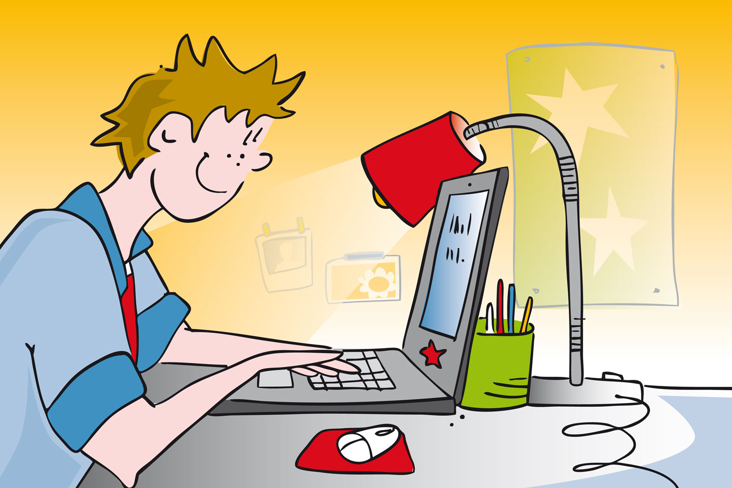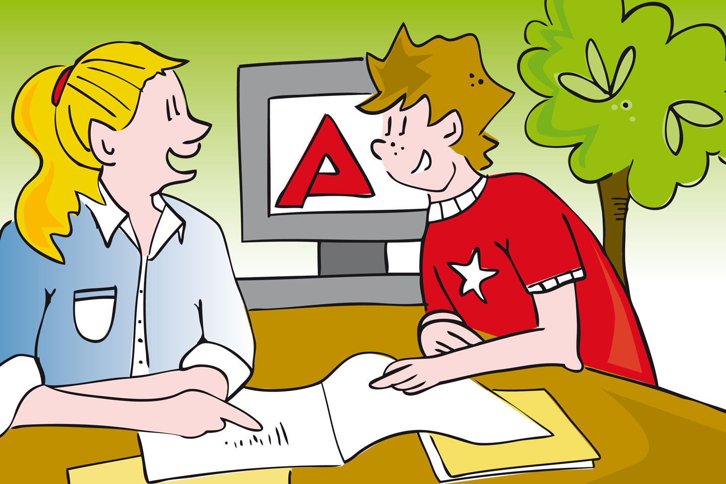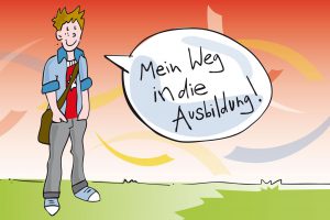 Diese Illustrationen veranschaulichen Jugendlichen die einzelnen Schritte eines klassischen Bewerbungsprozesses. Eingebunden in redaktionellen Text begleitet der Betrachter den Jungen von der Erstberatung im Arbeitsamt bis zum erfolgreichen Vorstellungsgespräch.